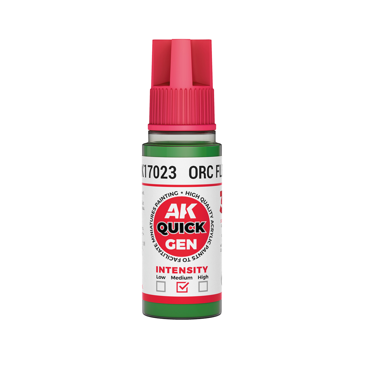 AK Interactive AK17023 – Orc Flesh (18 ml) este o vopsea acrilică tip contrast / speedpaint din gama Quick Gen, creată pentru pictarea rapidă a miniaturilor și machetelor, cu evidențiere automată a detaliilor.
